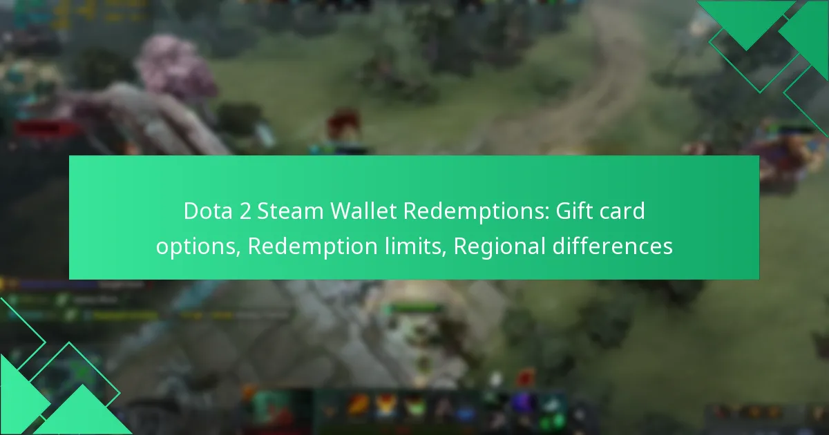 Dota 2 Steam Wallet redemptions offer players the opportunity to enhance their gaming experience through various gift card options available at multiple retailers. However, it’s important to be aware of the redemption limits, which can vary based on transaction amounts and the type of gift card used. Additionally, regional differences can affect the availability of gift cards, currency conversion rates, and usage restrictions, making it essential for players to understand these factors to optimise their purchases.